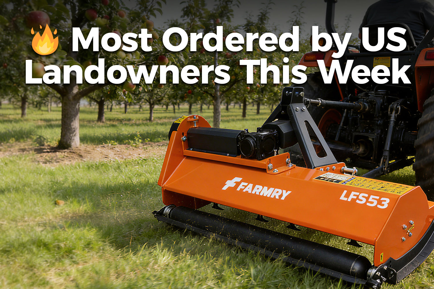 3 Point 53" Flail Mower, PTO Powered 15-35HP Mowing Attachment for Category 1 Tractors, LFS53An orange farmry 3 Point 53 Flail Mower (LFS53), PTO powered for 15-35HP Category 1 tractors, features a black roller and bracket for 3-point linkage attachment.