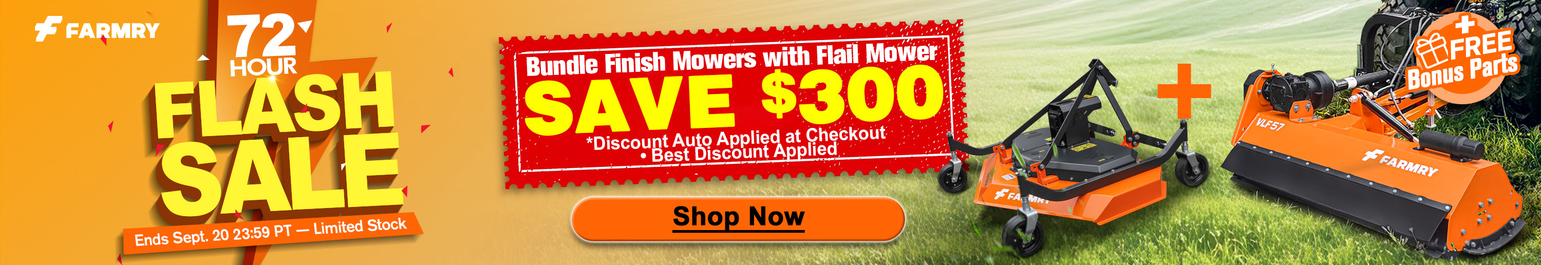 We're spotlighting top-rated tractor attachments like finishing mowers, wooder chiper and stump grinders — with limited-time perks available for select models. Some items may include bonus accessories or exclusive checkout discounts. For a limited time, enjoy Finish Mowers $150 OFF, Or bundle with another implement, like a Wood Chipper or Stump Grinder, and save $300 —delivered fast from our U.S. warehouse.